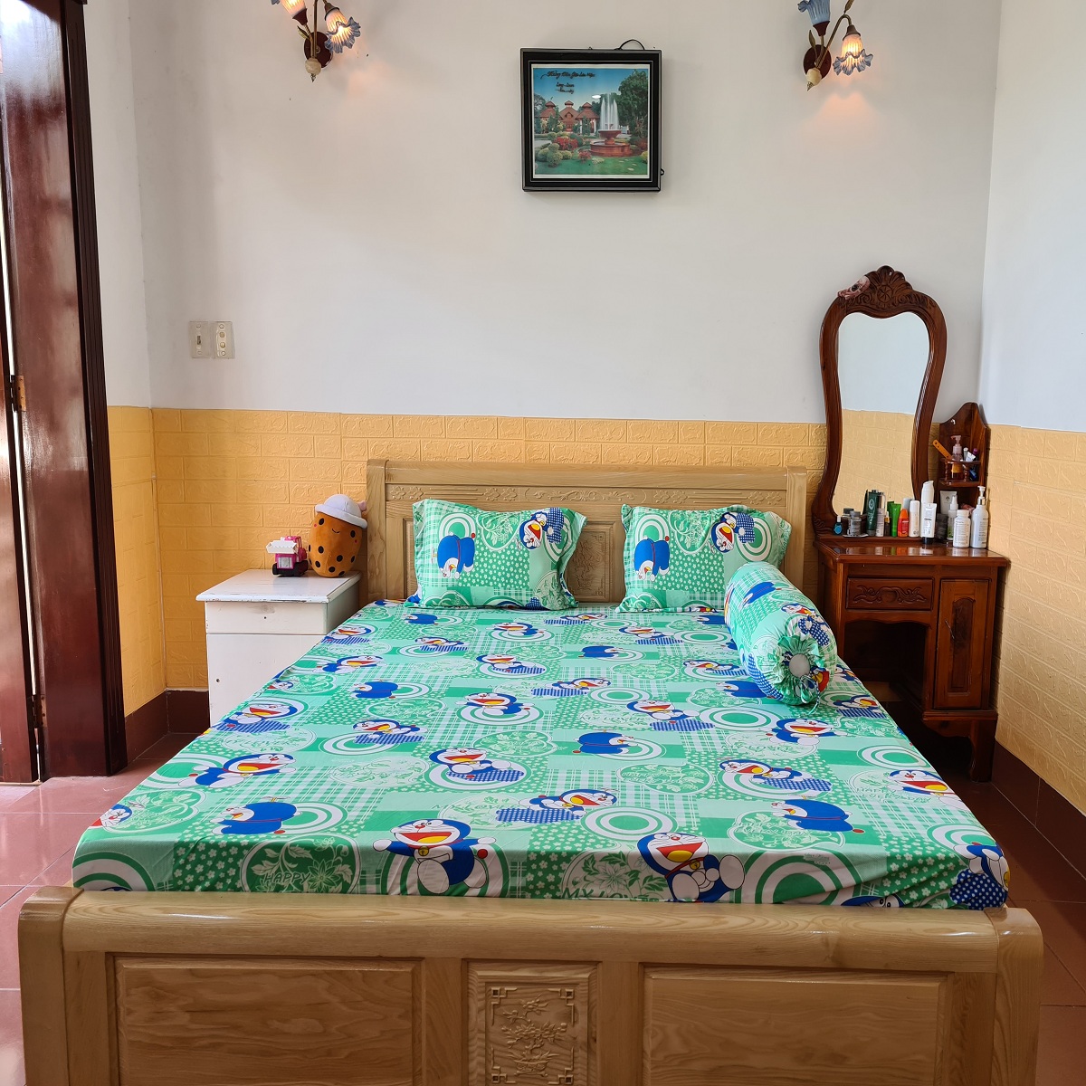 - Bộ drap thun Hàn Quốc  được may từ chất liệu thun Hàn Quốc.Chất vải mềm mịn, thoáng mát đảm bảo thấm hút mồ hô tốt cho bạn và gia đình giấc ngủ êm dịu.